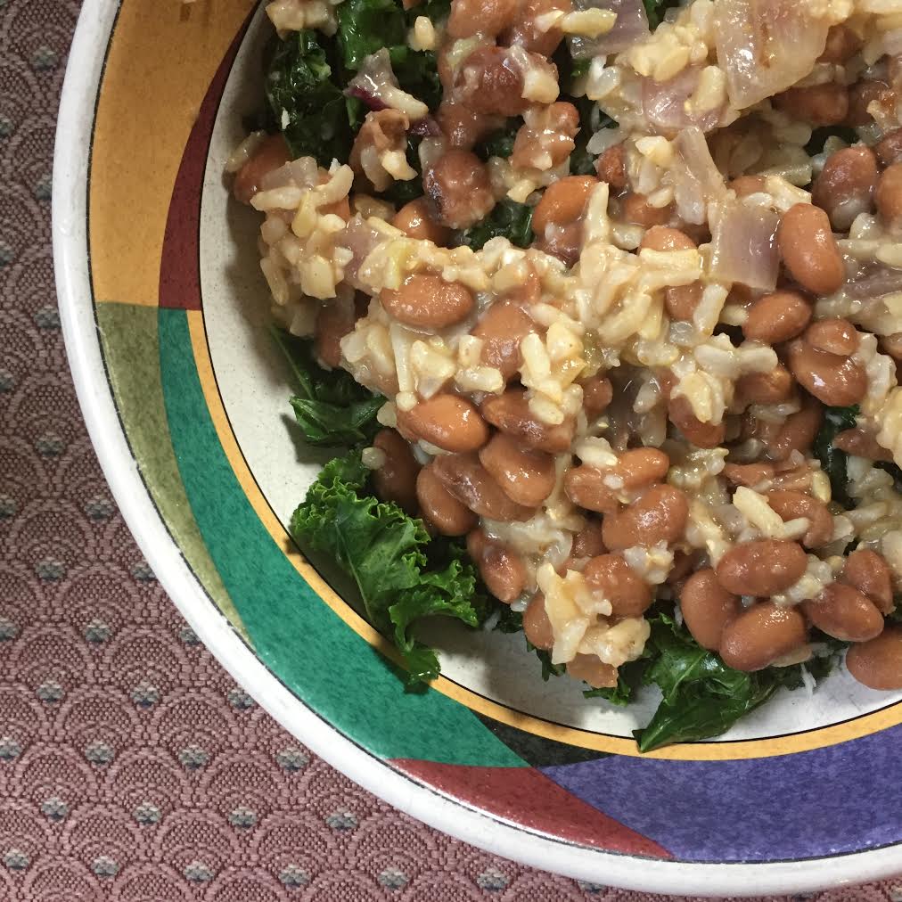 Divide the kale and beans/rice into 4 bowls. (Or separate out one serving and save the rest for lunch all week long.) Squeeze a little lemon on top and enjoy warm!