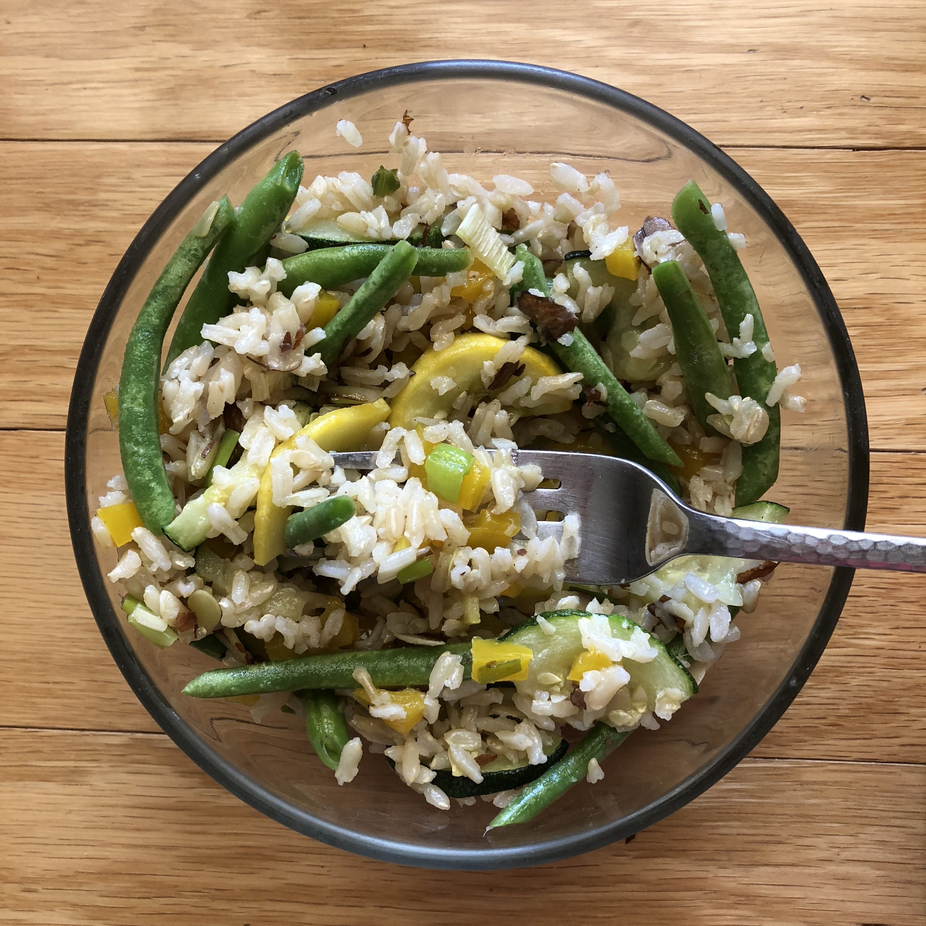 When the saute is done, combine it with the rice and the squash. Mix it up really well.